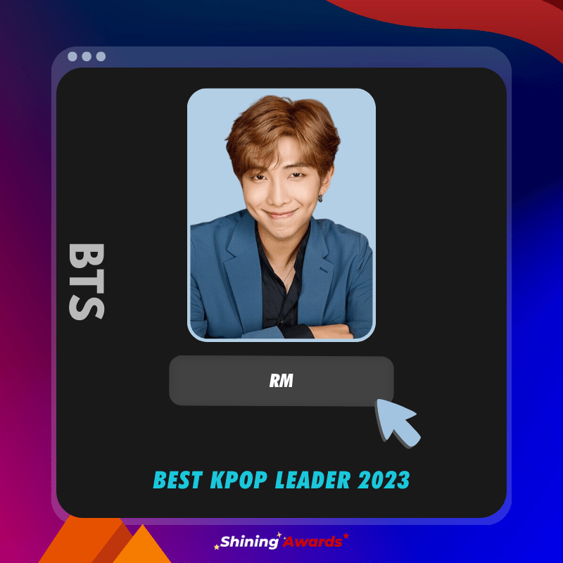 Congratulations to RM of BTS as The Winner of the Best Kpop Leader 2023.